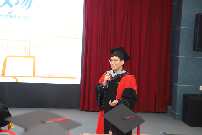 研究生院院长陈婷老师和教师代表徐国泰老师也都在典礼上致辞。他们衷心祝福毕业生同学们取得的优秀科研成绩。徐老师以自己的人生奋斗经历为例叮嘱大家要怀着一颗宽容和释然的心对待遇到的一切困难;要怀着一颗感恩的心与人相处。