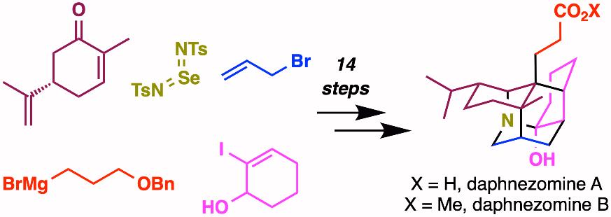 /北京生命科学研究所李超实验室()在《Journal of the American Chemical Society》杂志上在线发表题为“Total Synthesis of (—)-Daphnezomines A and B”的研究论文。该论文首次报道了两个复杂虎皮楠类天然产物(—)-Daphnezomines A和B的简洁全合成工作。
