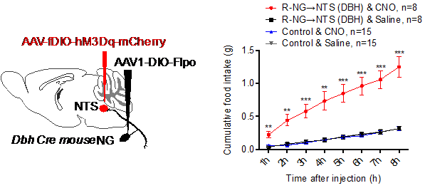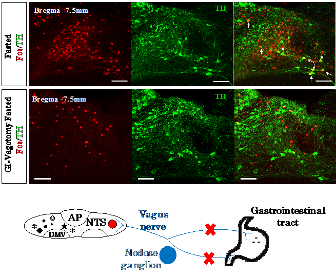 1、迷走-孤束核神经回路存在响应饥饿信号的神经元,并促进食欲
