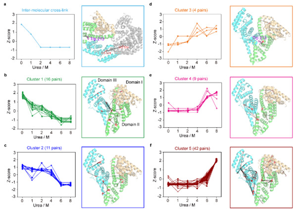 图1.通过DOPA2交联质谱技术分析BSA在不同浓度尿素中的变性状态。