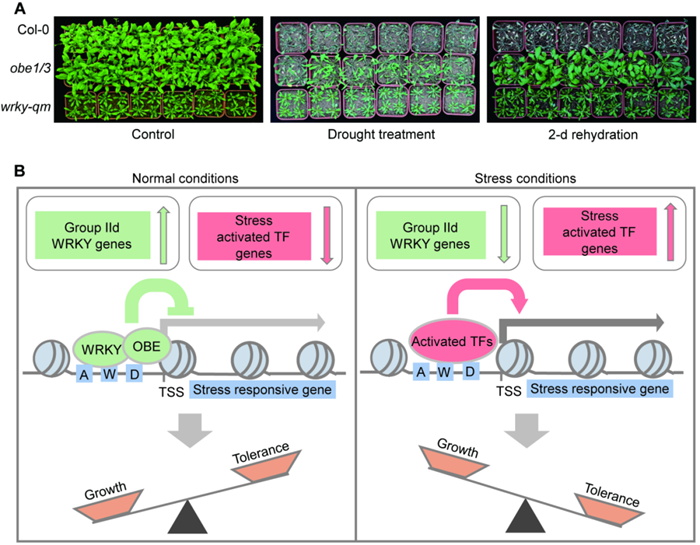 图2WRKY-OBE复合体平衡植物生长和逆境应答的工作模型