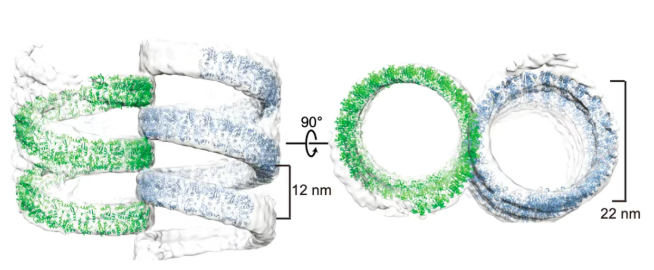 与此同时,郑三多团队提供了关键的结构生物学证据。他们利用冷冻电镜解析了 SARM1 在结合 ADPR-加合物后的超螺旋丝状体结构,为上述生化机制提供了直接的结构学支撑。有趣的是,这与细菌、植物TIR蛋白通过形成纤维状结构实现催化NAD+水解活性的机制相呼应,提示该激活通路的进化保守性。