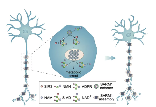 5.Figley MD, Gu W, Nanson JD, et al. SARM1 is a metabolic sensor activated by an increased NMN/NAD⁺ ratio to trigger axon degeneration. Neuron. 2021;109(7):1118-1136.e6.